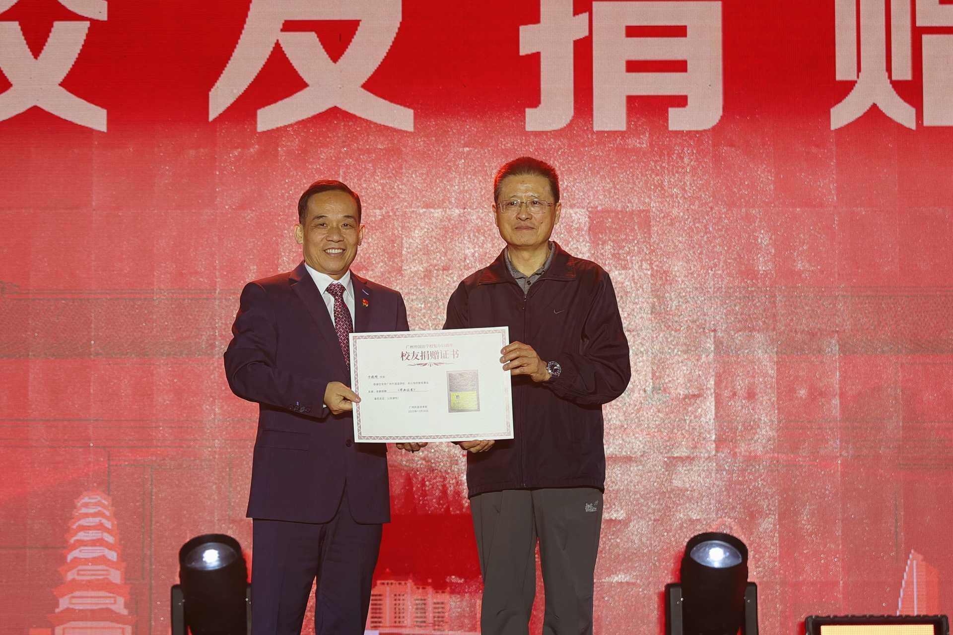 在近日举办的广州外国语学校复办十五周年庆祝活动暨2026迎新晚会上,该校杰出校友、广州市原外事办主任方晓明将自己珍藏的1980年毕业证书捐赠给母校,引发老校友们的集体共鸣,也引起在校年轻师生的好奇。